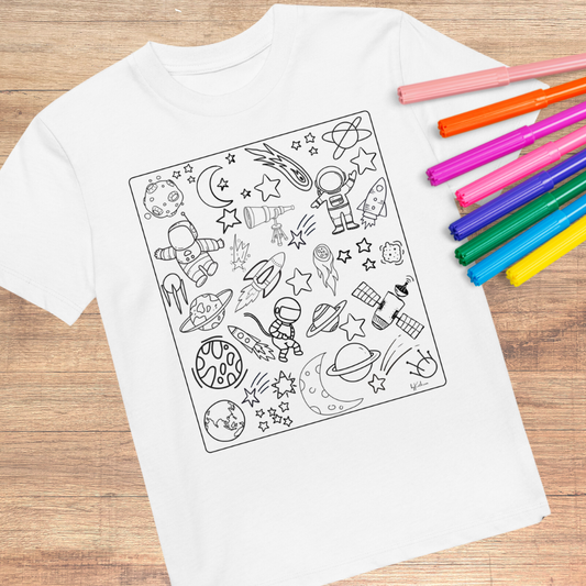 Space Adventure Doodles Color-in tee: Organic cotton kids t-shirt